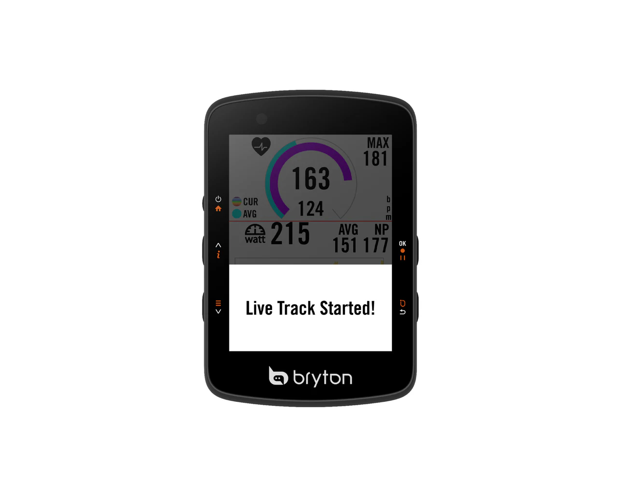 Svojo trenutno lokacijo in stanje vožnje lahko v realnem času delite s prijatelji in družino prek funkcije Bryton Live Track.