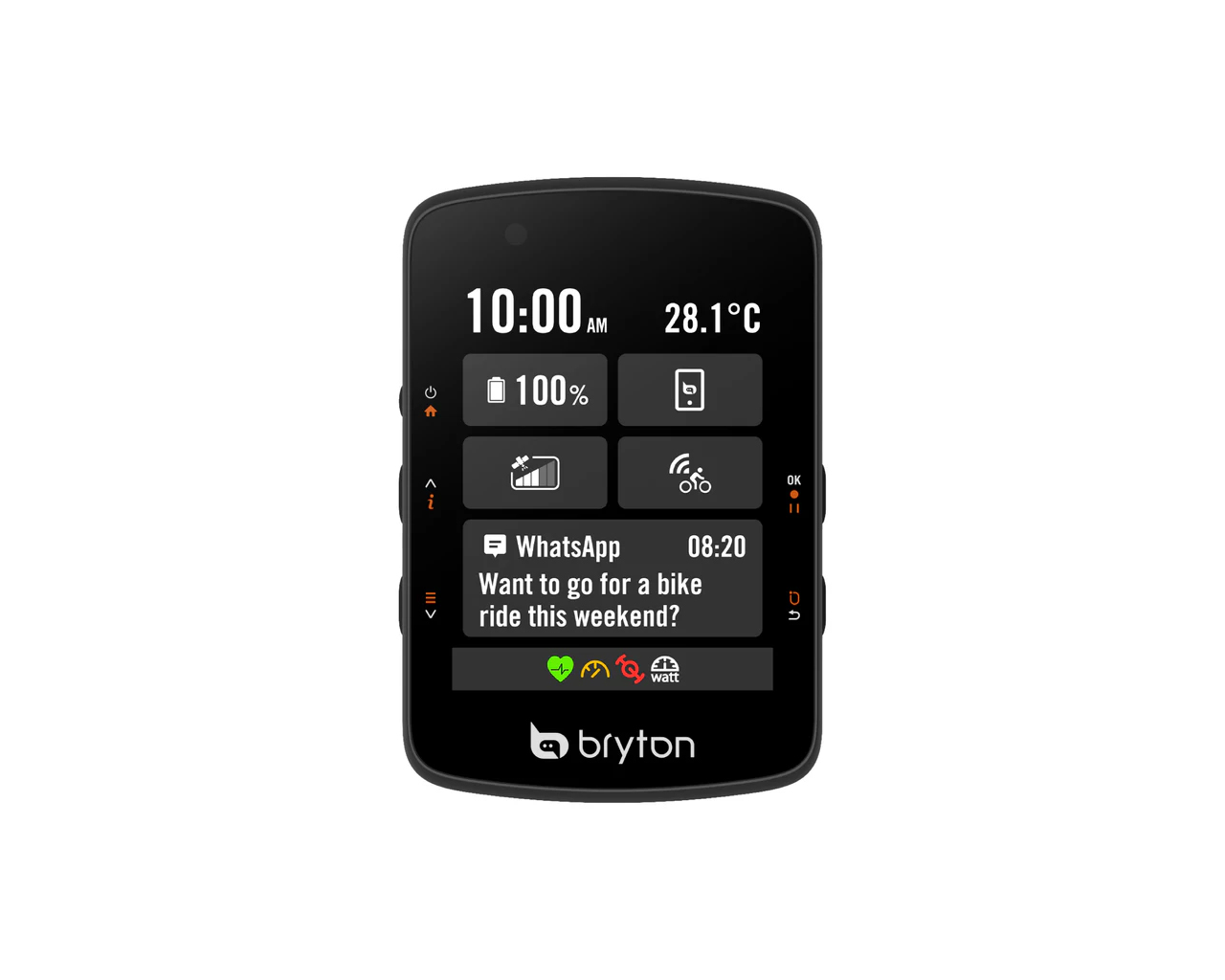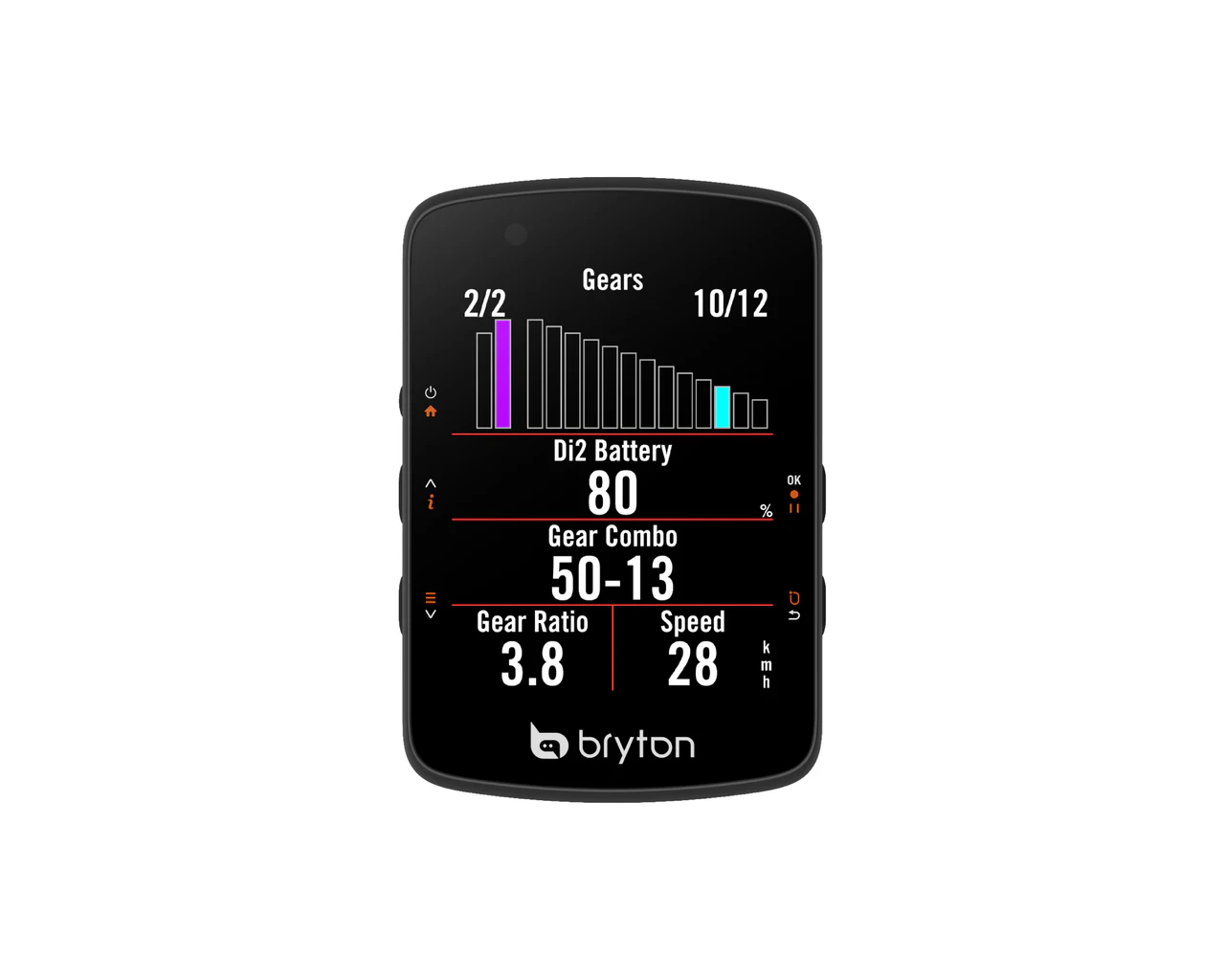 Ugoden kolesarski računalnik s 7,10 cm barvnim LCD zaslonom. Omogoča povezavo z radarskimi lučkami, GPS navigacijo po poti, napredne vadbe, Climb Challenge ter enostavno sinhronizacijo z Bryton Active aplikacijo. Polnilna baterija omogoča do 37 delovanja in polnjenje z USB-C kablom. V kompletu prejmete še osnovni nosilec za krmilo, polnilni kabel ter varnostno zanko.