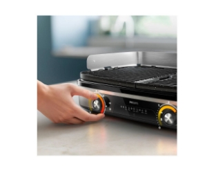Uživajte v okusih domačega žara z namiznim žarom Philips HD6222/90. Dve območji gretja in obrnljivi plošči, omogočajo vsestransko peko in odlične rezultate.