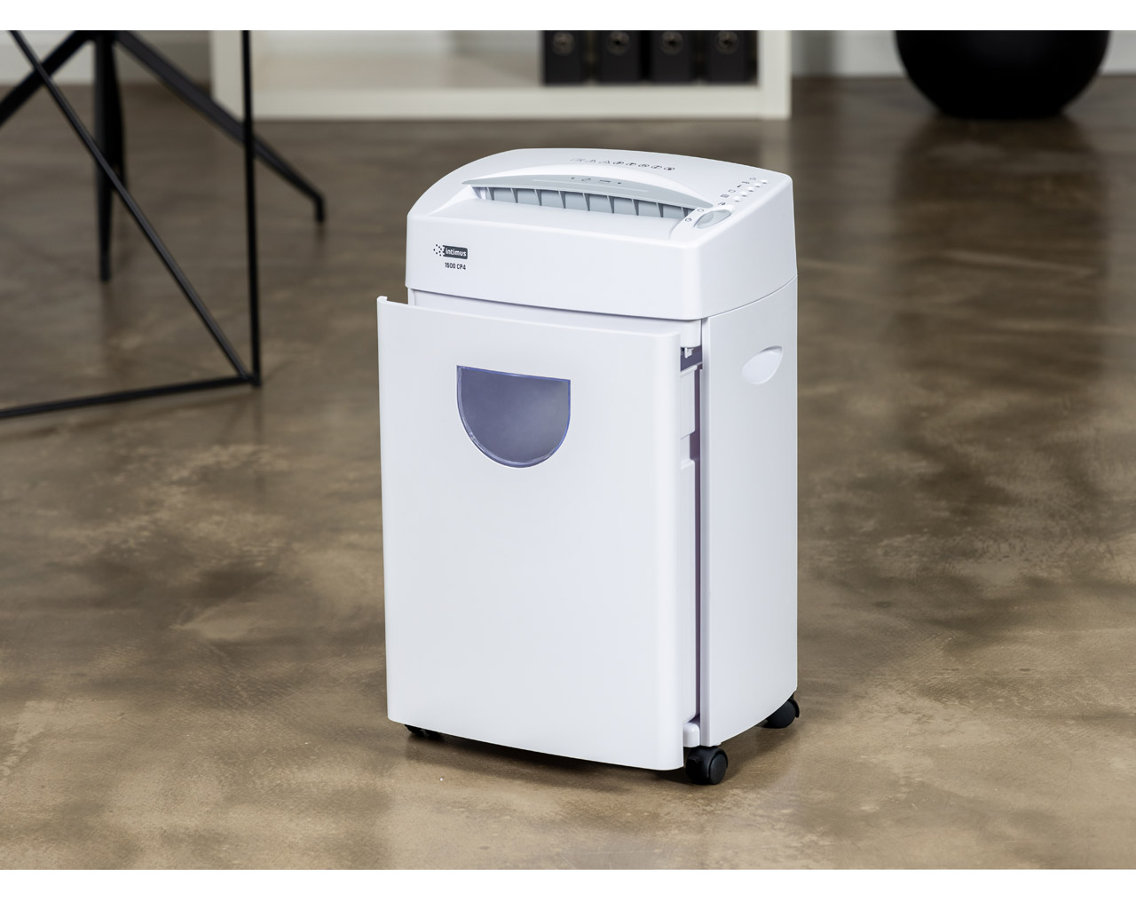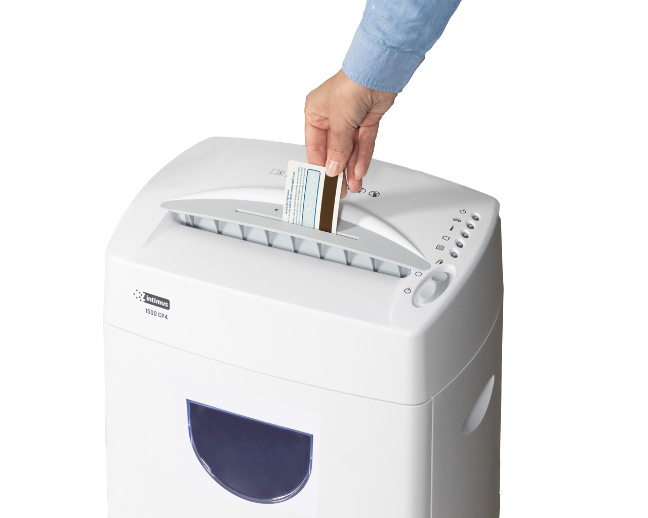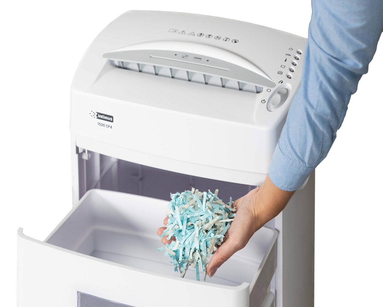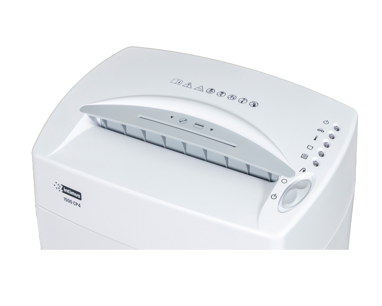 Intimus 1500 CP5 je kompaktni uničevalnik dokumentov z 2 × 12 mm križnim rezom, ki zagotavlja visoko stopnjo varnosti (P-5). Z lahkoto uničuje papir s sponkami in kreditne kartice. Zahvaljujoč 22-litrskemu košu in kolesom omogoča priročno uporabo ter diskretno in učinkovito uničevanje dokumentov.