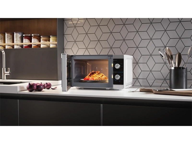 Ne glede na to, ali gre za odmrzovanje, segrevanje ali kuhanje, je mikrovalovna pečica magična beseda za hitro in preprosto kuhanje, ki ne samo prihrani čas, ampak tudi energijo v primerjavi s pečico. Sharpova MS01E-S kompaktna mikrovalovna pečica zavzame malo prostora in je enostavna za uporabo, zaradi česar je idealna za vsakodnevno uporabo.