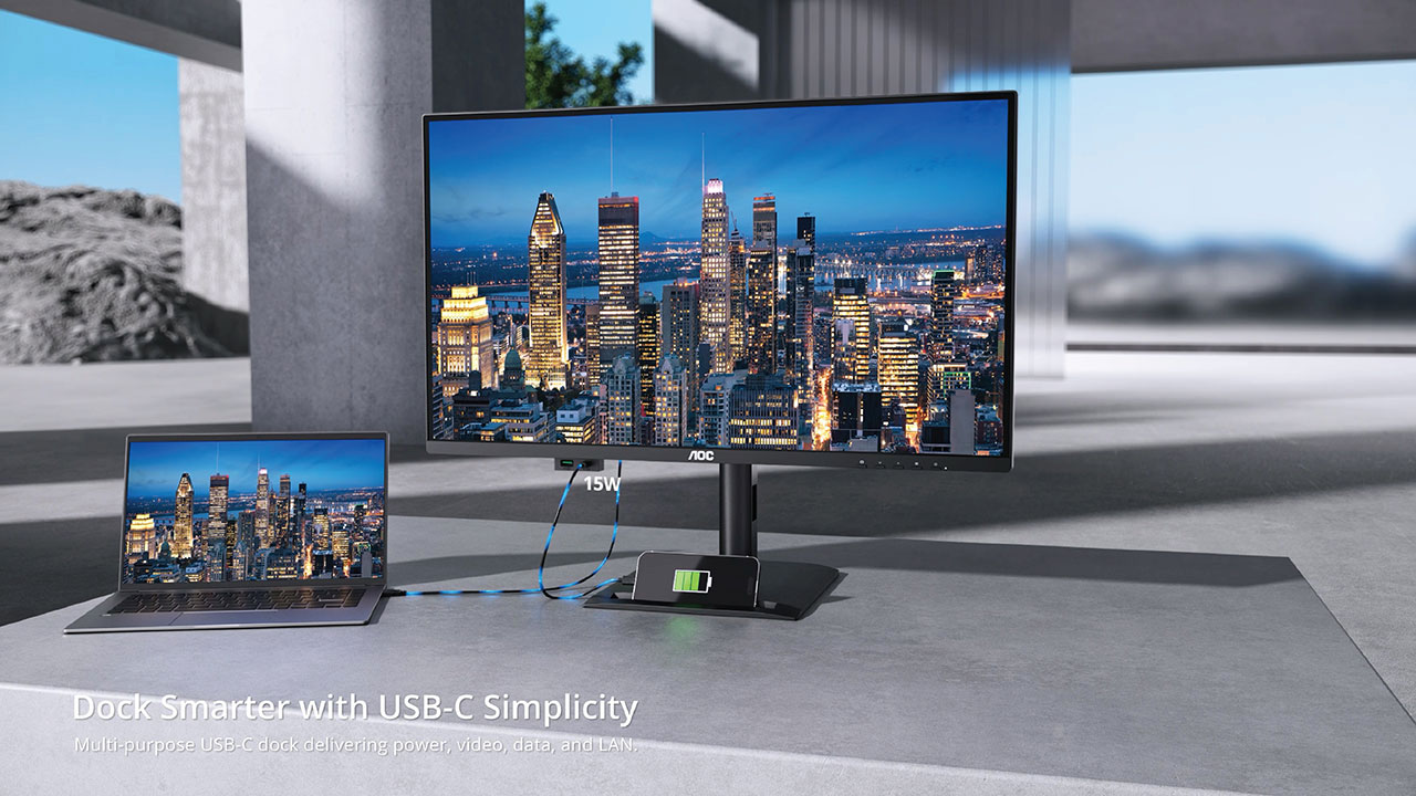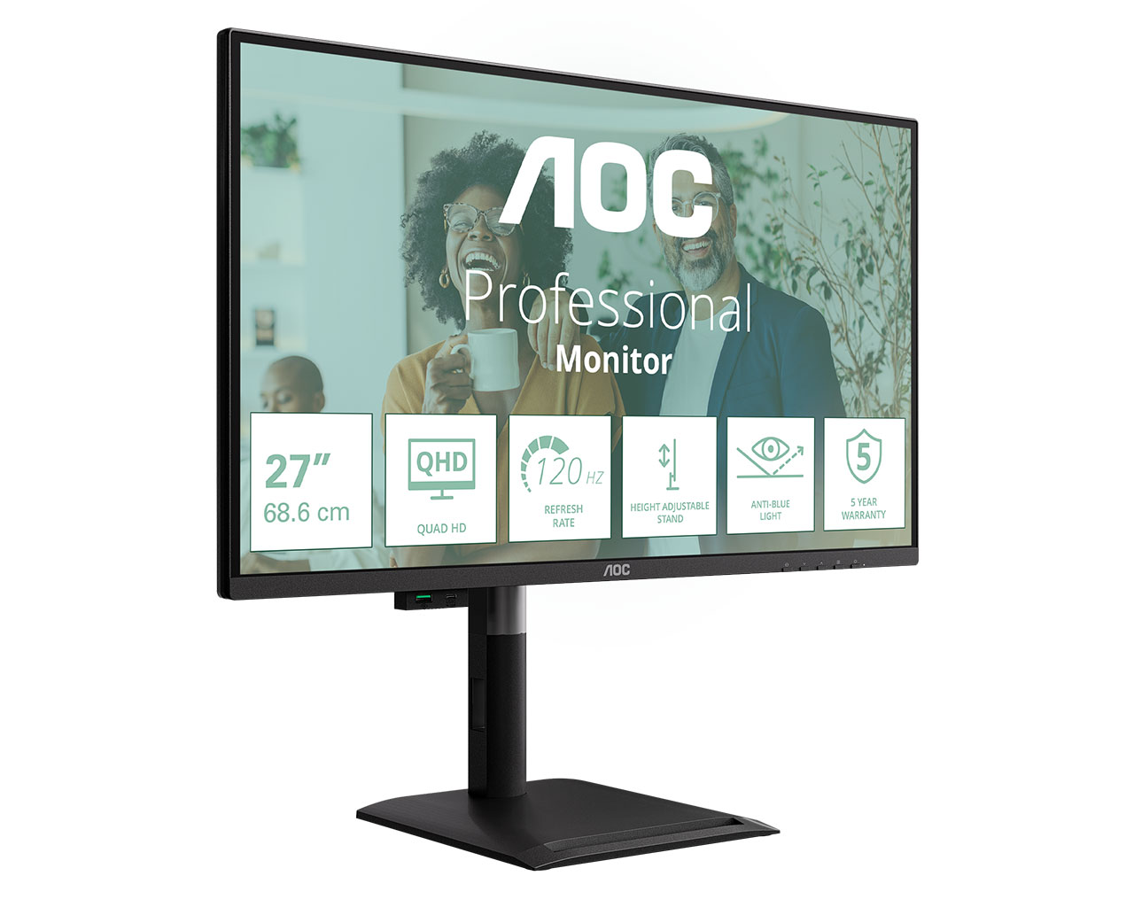 AOC Q27P4CV ni le monitor, temveč osrednja delovna postaja, ki združuje vrhunski prikaz, napredno povezljivost in ergonomijo.