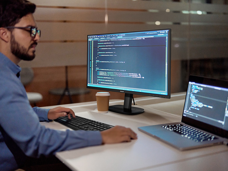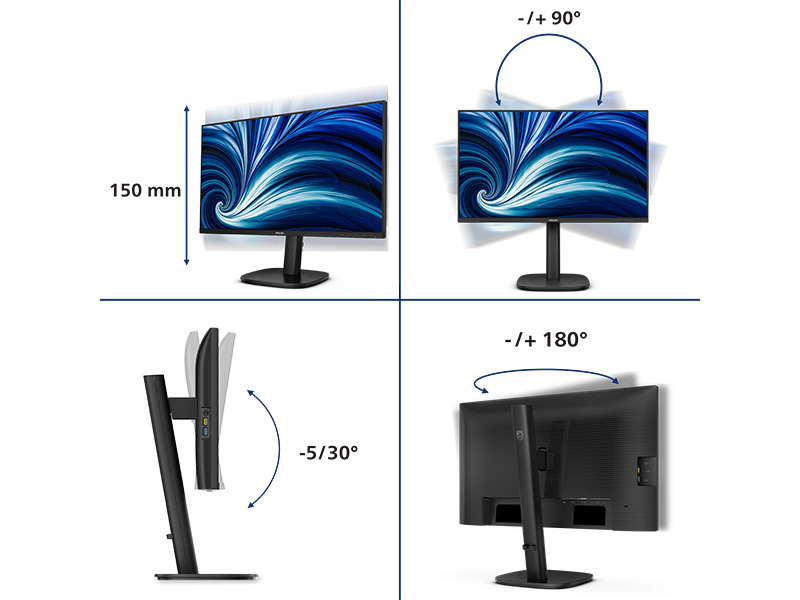 Philips 24B2N3200J je 24-palčni (23.8″) poslovni monitor s Full HD ločljivostjo (1920 × 1080), IPS panelom in 120 Hz osveževanjem za tekočo sliko. Zasnovan je za udobno vsakodnevno delo – vključuje SoftBlue tehnologijo za zmanjšanje škodljive modre svetlobe, Flicker-Free za preprečevanje utrujenosti oči in SmartErgoBase podstavek za prilgodljive ergonomske nastavitve. Garancija 5 let!