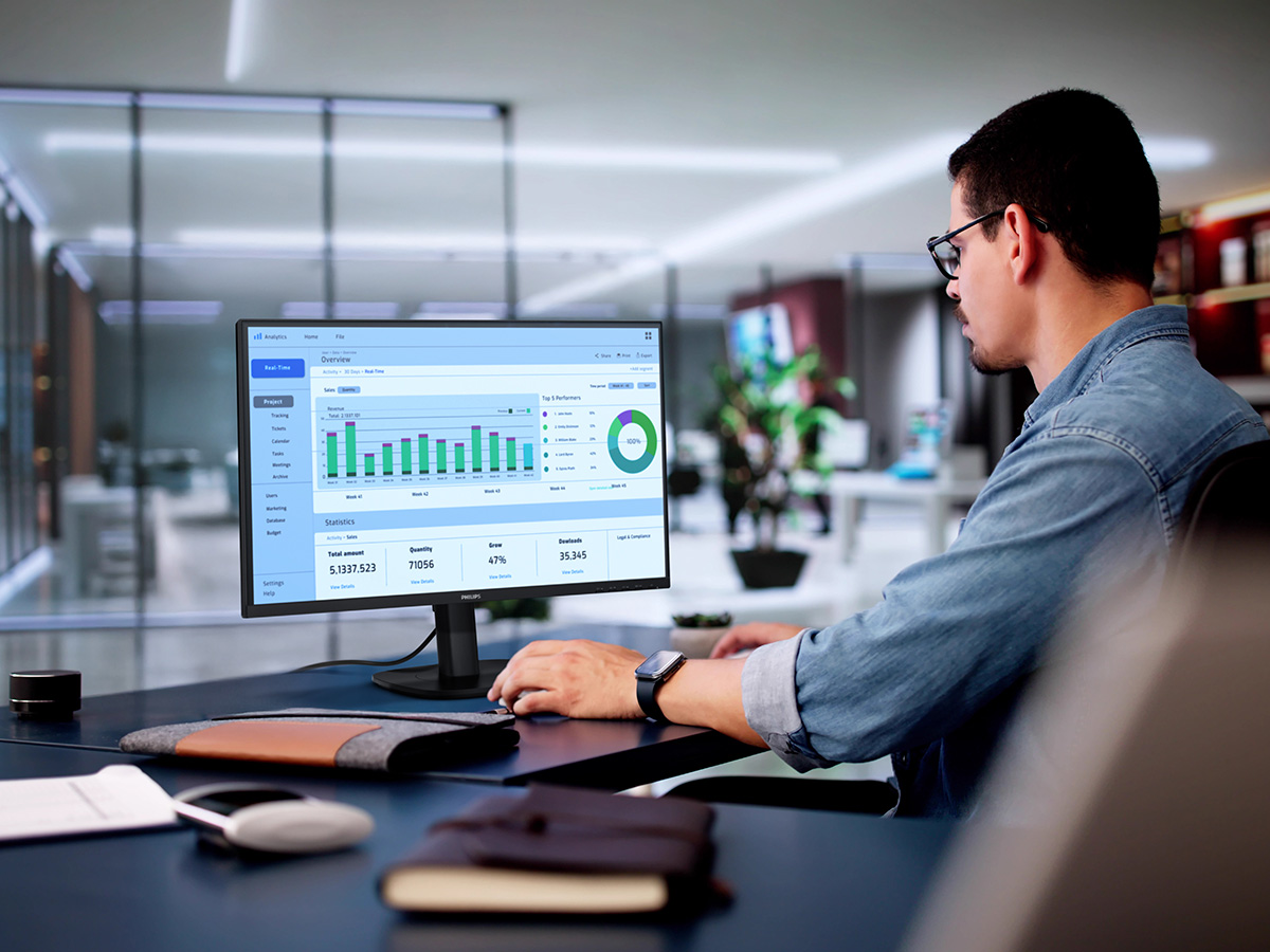Tehnologija SoftBlue, ločljivost Quad HD in hitrost osveževanja 120 Hz tega monitorja vam omogočajo hitro in udobno izvajanje vsakodnevnih opravil. Poleg tega SmartErgoBase poskrbi za ergonomičnost izdelka.
