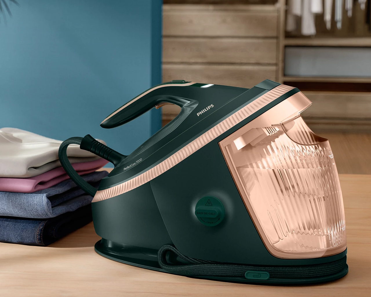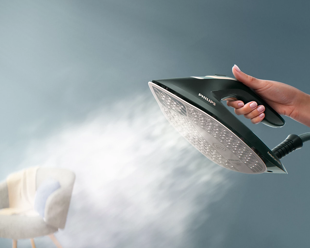 Parni mehanizem TurboPower za boljšo izkušnjo glajenja gub; močnejši pretok pare brez prekinitev. Mehanizem TurboPower zmanjša mokre madeže na oblačilih med glajenjem gub*, oblačila so pripravljena brez čakanja, da se posušijo.