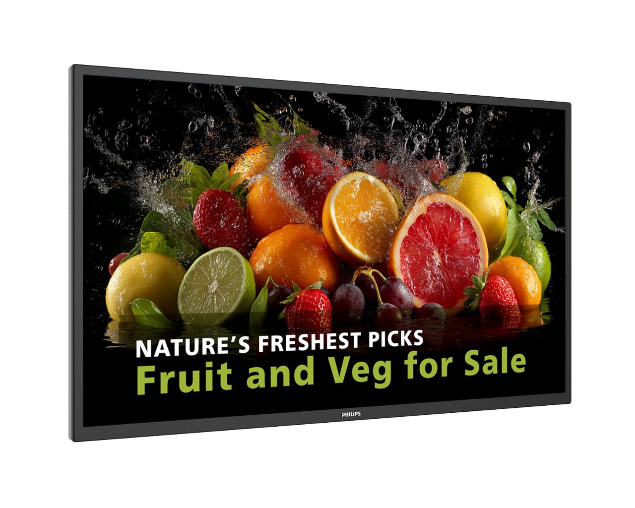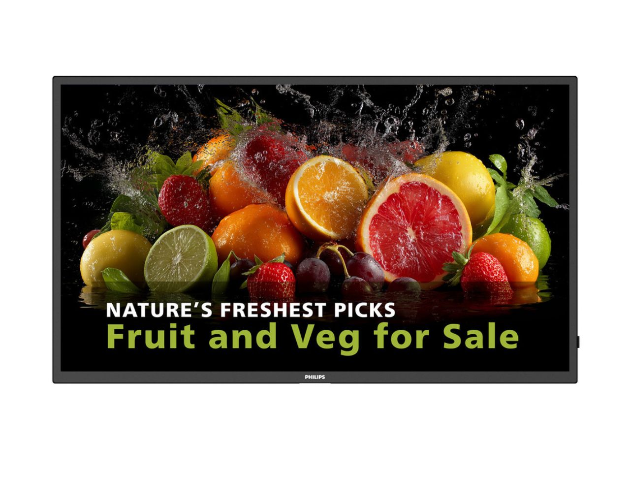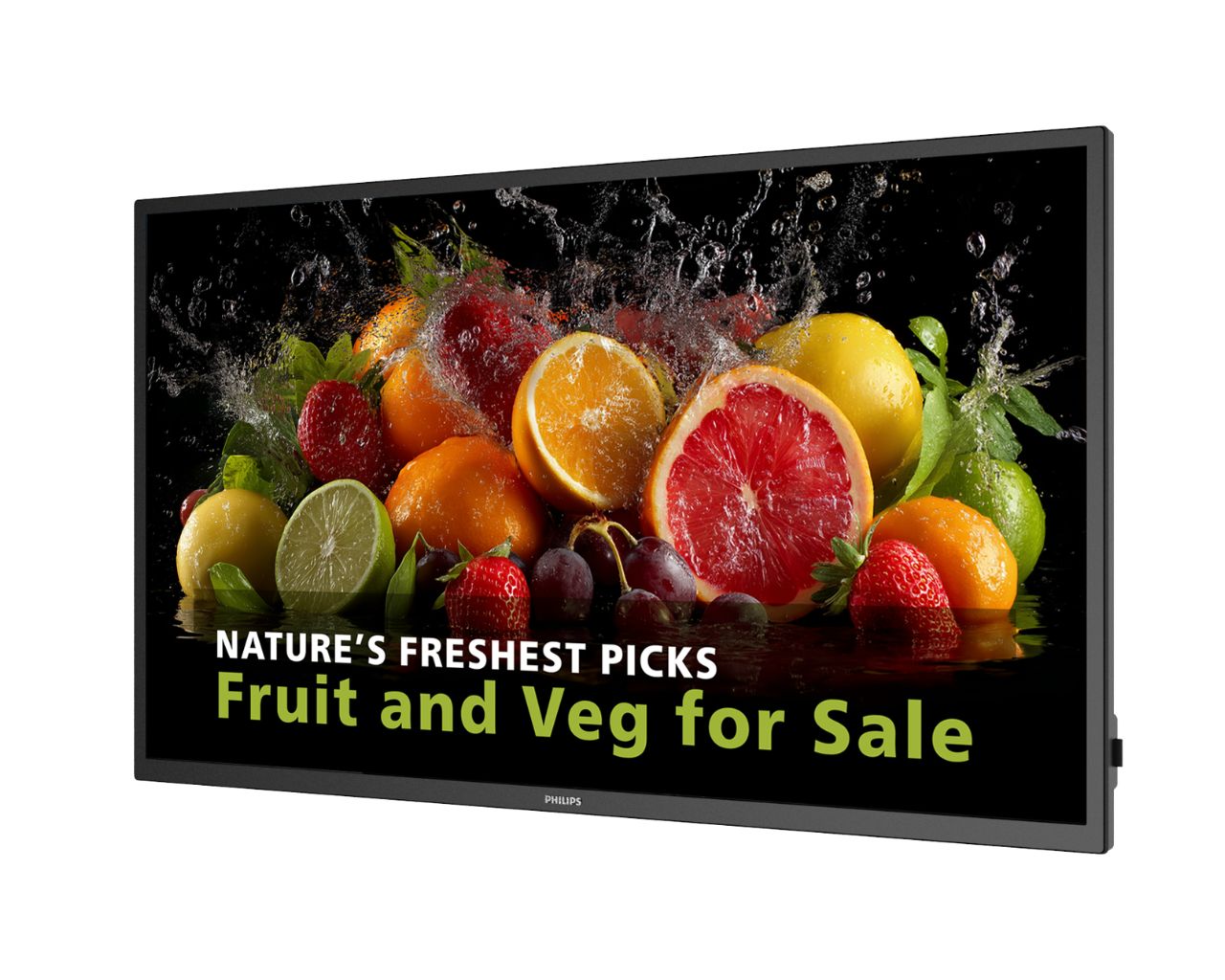 Philips 32BDL5050D digitalni zaslon za profesionalno uporabo z 24/7 delovanjem, Full HD ločljivostjo in integriranim predvajalnikom. Idealna rešitev za digital signage v trgovinah, hotelih in poslovnih prostorih.