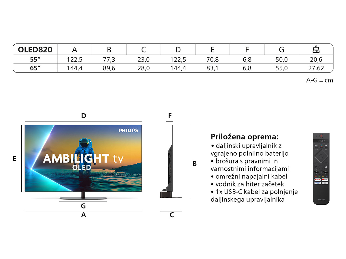 - Zaslon: OLED-televizor 4K Ultra HD