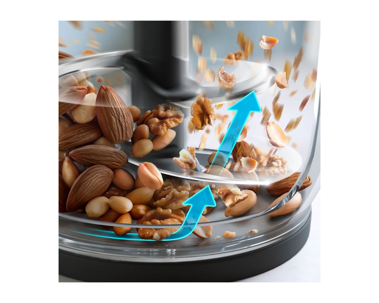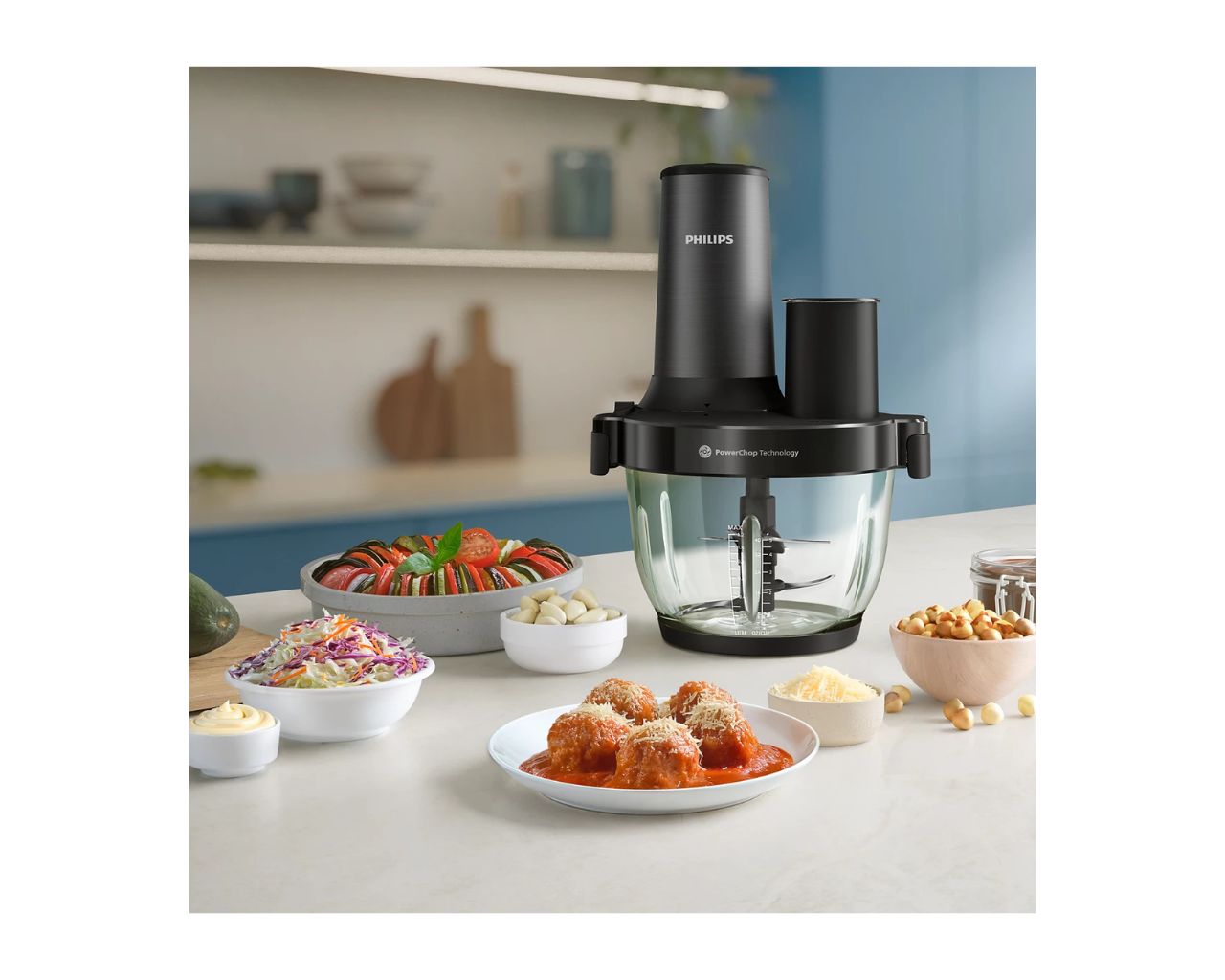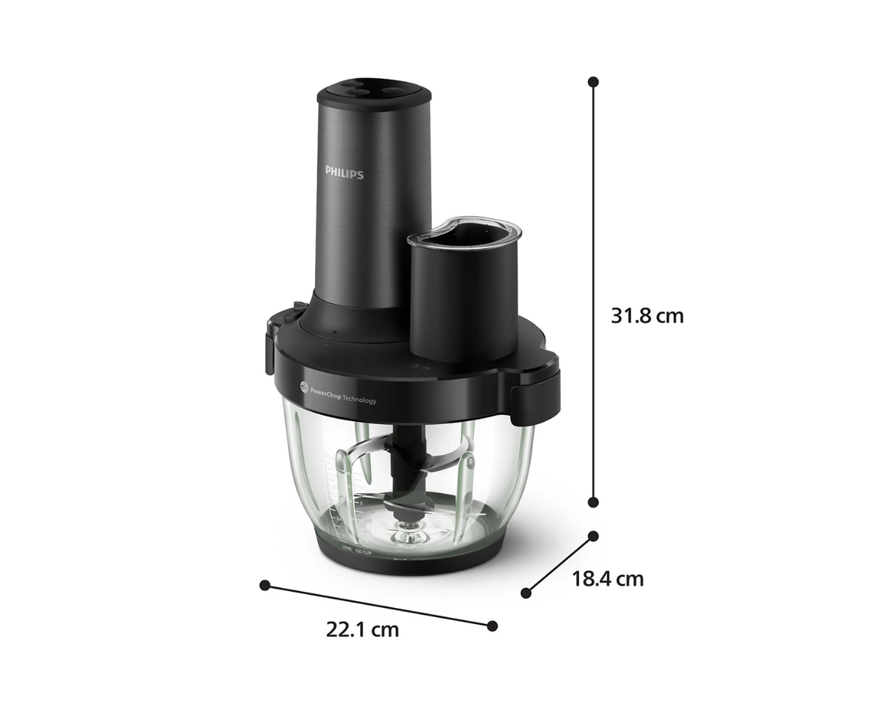 Zahvaljujoč tehnologiji PowerChop, ki optimalno združuje rezila, kot rezanja in notranjo posodo, enakomerno sesekljajte mehke in trde sestavine.