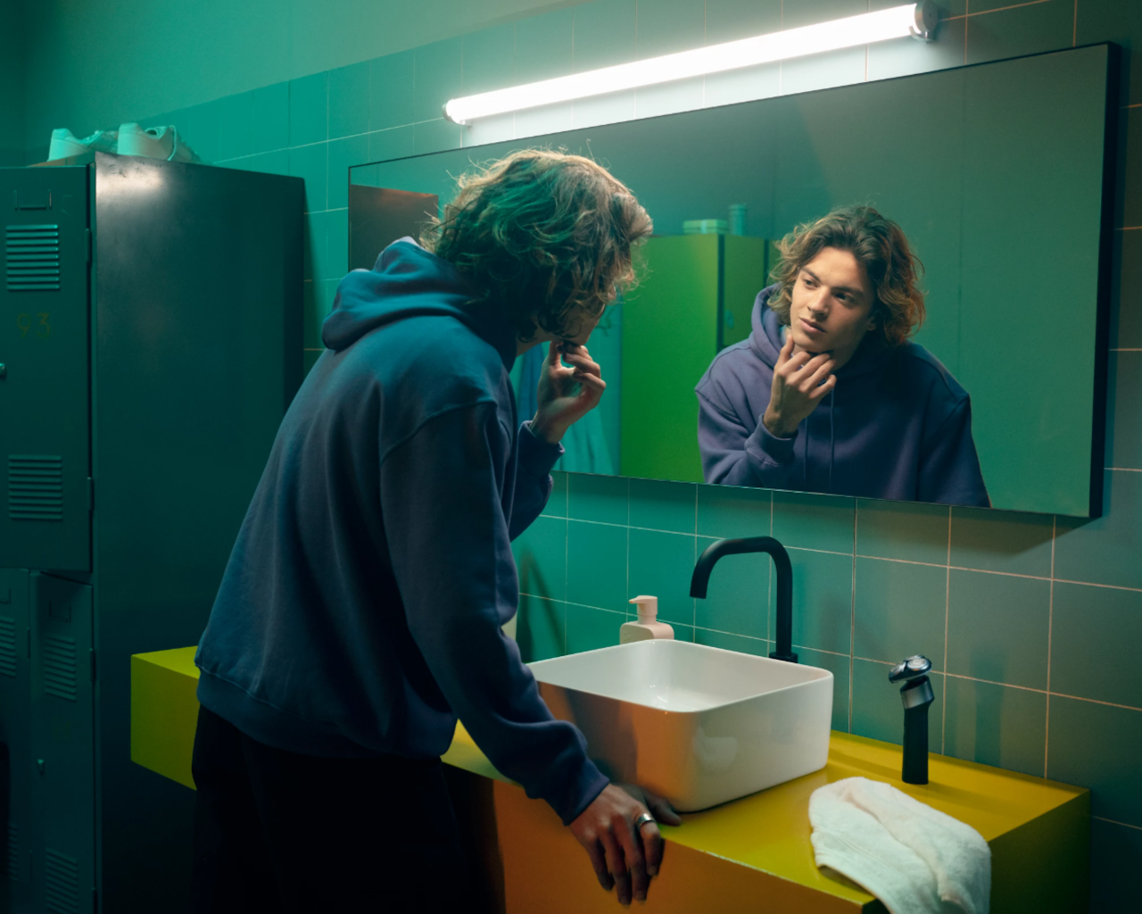 Udobno britje. Zaščitna prevleka SkinGlide s 100.000 mikro kroglicami na kvadratni centimeter izboljša drsenje po koži do 20%** in bistveno zmanjša njeno draženje.