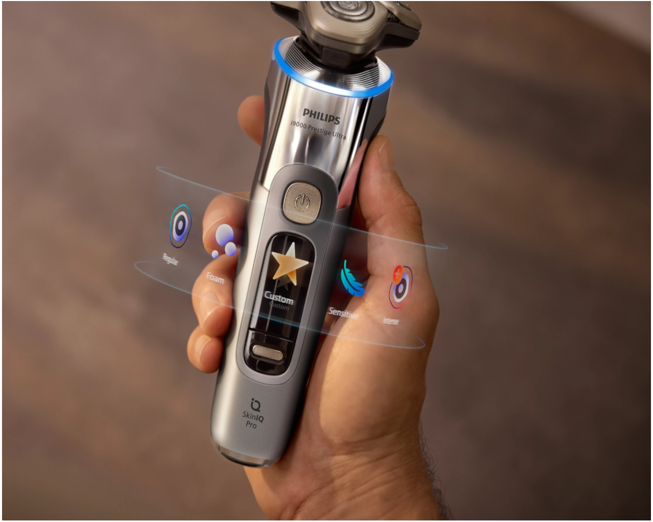 Naš najinovativnejši brivnik Philips i9000 Prestige Ultra s sistemom Lift & Cut s trojnim delovanjem, ki dlačice odreže tik ob korenini, zagotavlja gladko kožo ves dan, tudi na težko dostopnih mestih. SkinIQ Pro zdaj nudi 5 načinov britja za vrhunsko udobje za kožo.