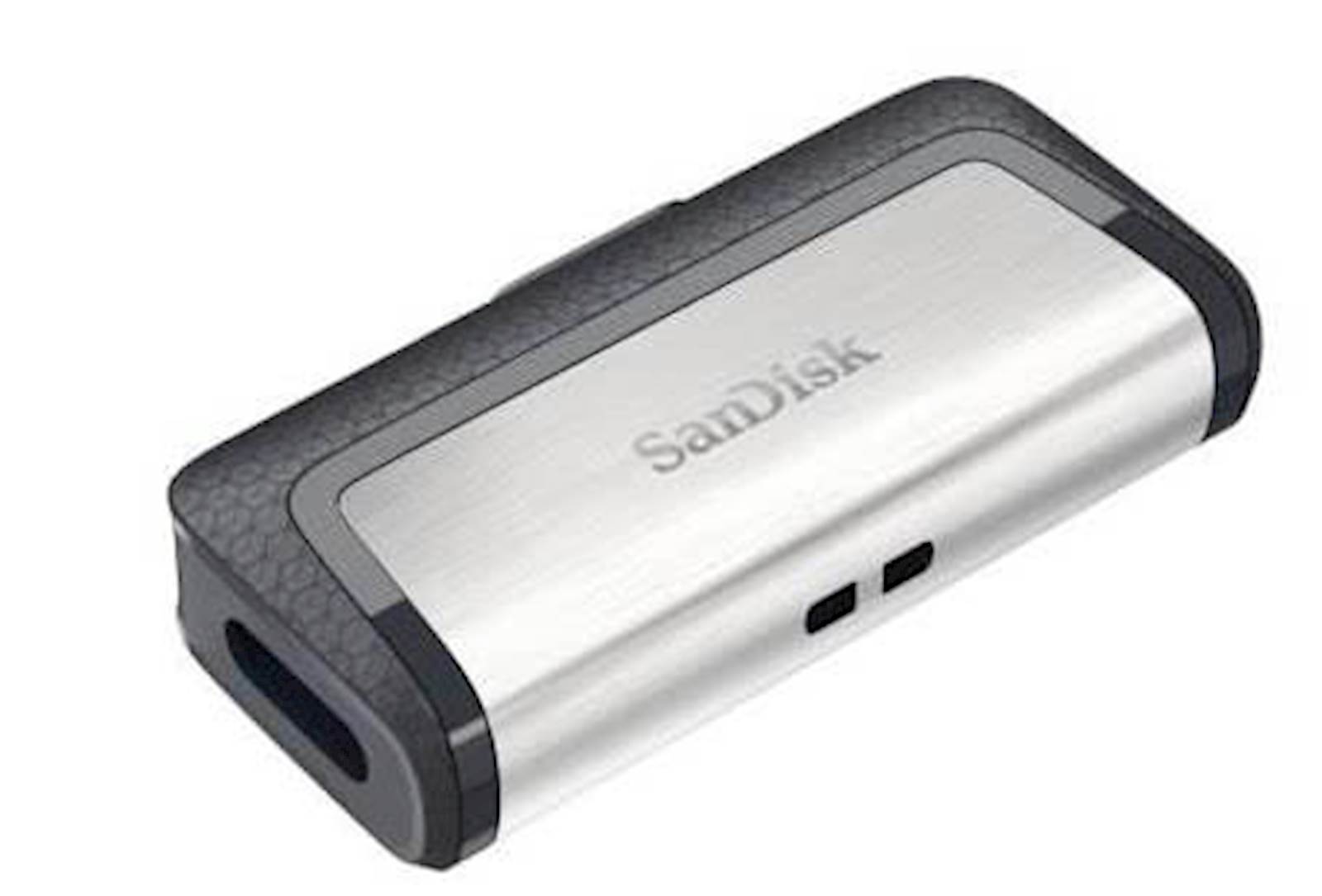 USB C & USB DISK SANDISK 64GB ULTRA DUAL, 3.1/3.0, srebrno-črn, drsni priključek